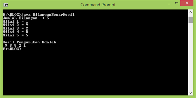 Contoh program Java mengurutkan angka tebesar ke angka terkecil menggunakan masukan/inputan sendiri.